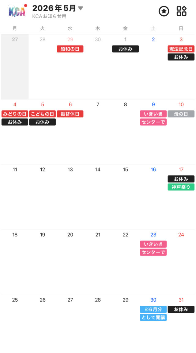 ※5/4(月祝)と5/5(火祝)がお休みのため、5月は月曜クラスと火曜クラスが月3回となります。こちらのクラスを受講いただいている皆様は他の曜日のクラスへ1回分振替をお願い致します🙏